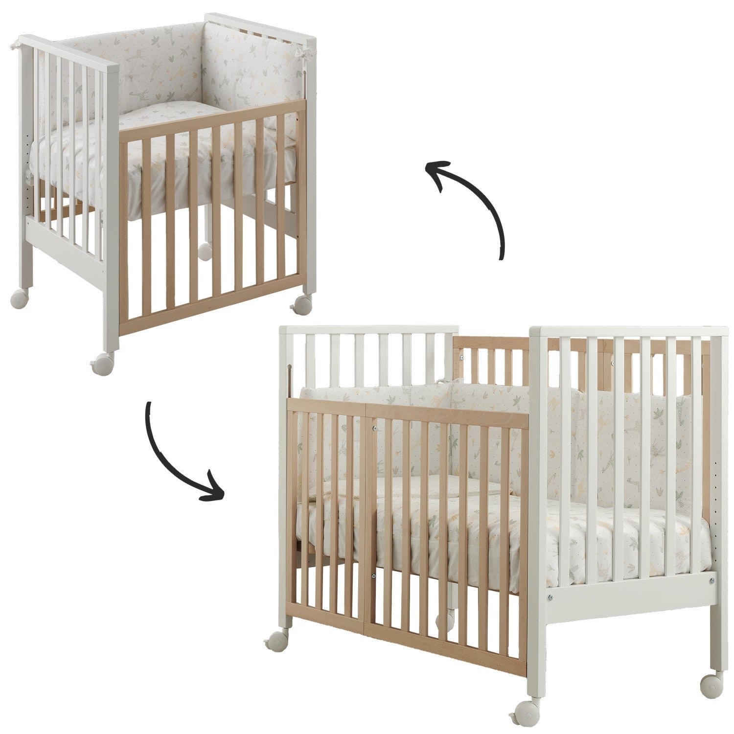 - Diventa un lettino standard con una sponda mobile conforme alla Normativa Europea di Sicurezza EN 716-1:2017+AC:2019. Adatto, circa, fino ai 4 anni del bambino.
