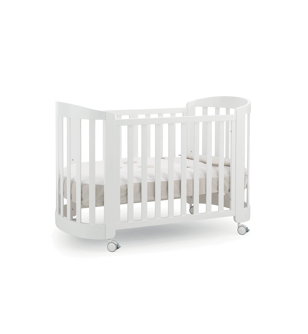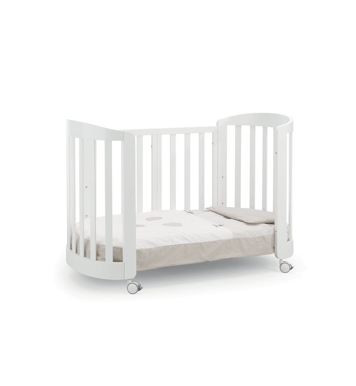 La culla/lettino della Collezione Sweet di Erbesi è un prodotto trasformabile, comodo per l'utilizzo sin da subito come culla con 3 posizioni per la rete e misure interne di 85 x 61 cm. Le due spondine si possono unire ed utilizzando l'altra rete e la sponda grande in dotazione si può trasformare in lettino, con misure interne 128 x 61 cm, utile oltre fino i 4 anni dei piccoli. Grazie alle 3 posizioni della rete si ha la comodità di diverse misure intermedie per arrivare alla posizione bassa dove, togliendo una delle sponde e togliendo le ruote, si arriva alla posizione montessoriana agevolando l'autonomia dei piccoli che crescono assieme al prodotto.