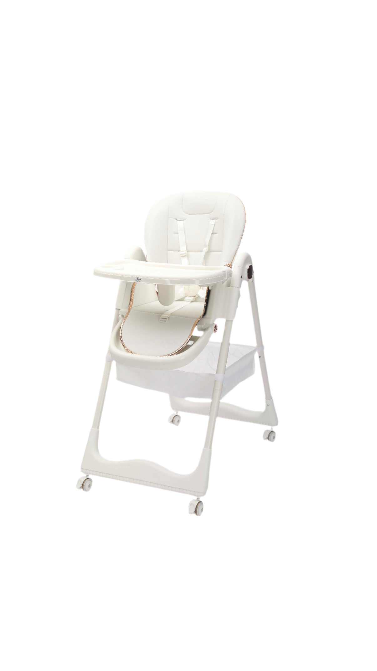 Set composto da seggiolone, bavaglino in silicone, scodella, cucchiaio e forchetta;cuscino in PU;4 ruote con fermi;vassoio pappa a 2 strati;4 posizioni del vassoio pappa;3 posizioni dello schienale;5 posizioni di altezza;3 posizioni dell'angolo del poggiapiedi; spallacci; sistema di ritenuta a 5 punti.