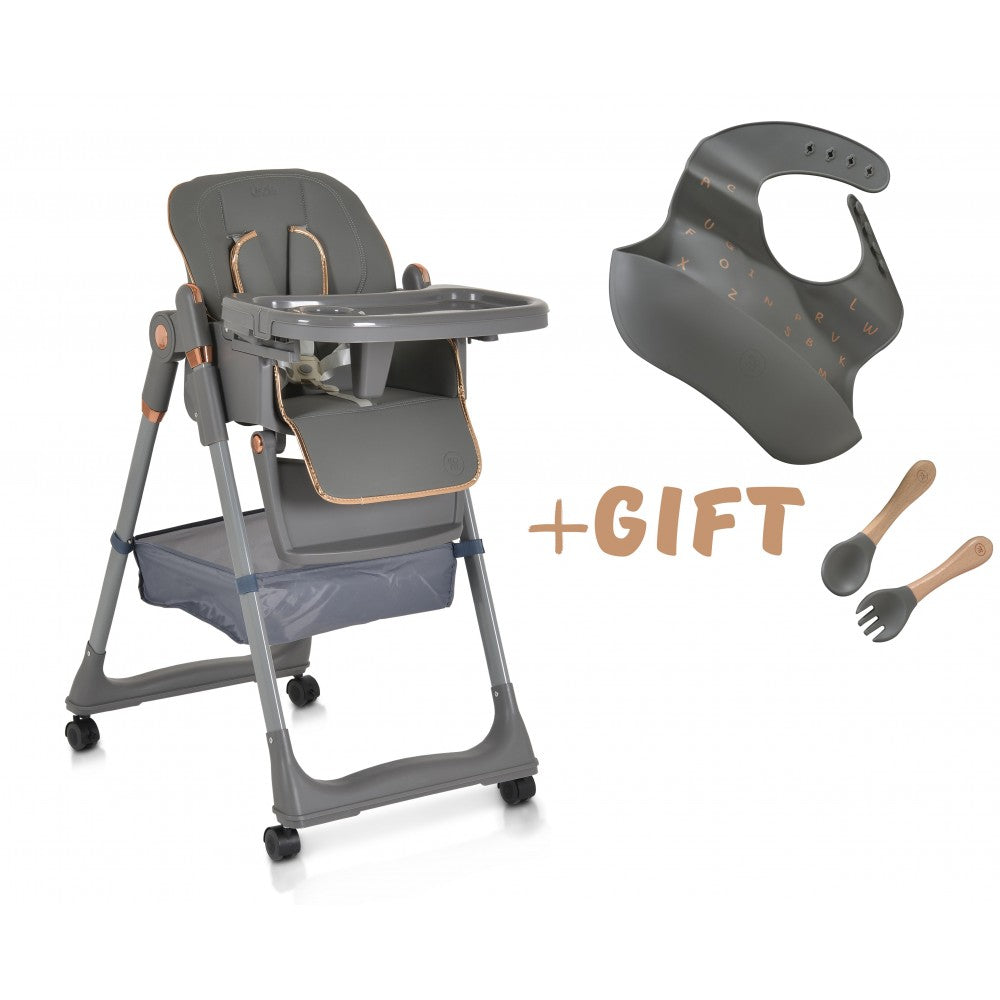 Sediolone Pappa Moni Lindo Grigio + Bavaglino e Posate in Silicone OMAGGIO